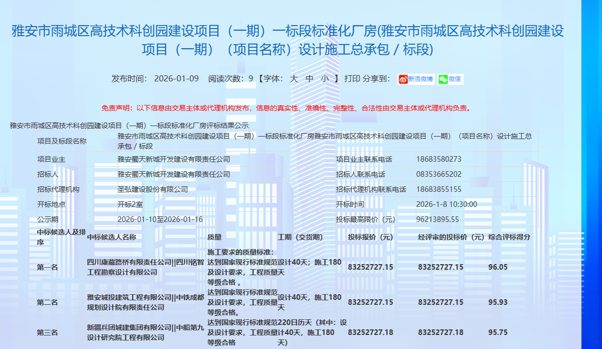蓄勢(shì)突破,奮楫開新。康藏路橋公司成功斬獲雅安市雨城區(qū)高技術(shù)科創(chuàng)園建設(shè)項(xiàng)目(一期)一標(biāo)段標(biāo)準(zhǔn)化廠房項(xiàng)目,中標(biāo)金額8325.27萬元,為公司2026年發(fā)展強(qiáng)勢(shì)開篇,迎來馬年“開門紅”。