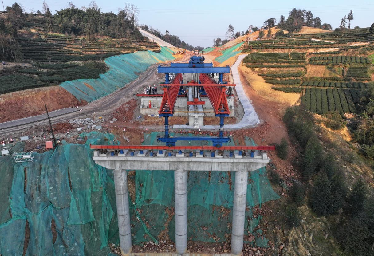 流水化施工,大力提升了架梁效率與作業(yè)安全性。截至目前,馬家溝1號(hào)橋建設(shè)取得關(guān)鍵進(jìn)展,第一跨首片梁已順利完成架設(shè)。這一突破標(biāo)志著橋梁施工正式進(jìn)入快速推進(jìn)階段,為后續(xù)馬家溝2號(hào)橋的架設(shè)及全線橋梁貫通邁出關(guān)鍵性的一步。