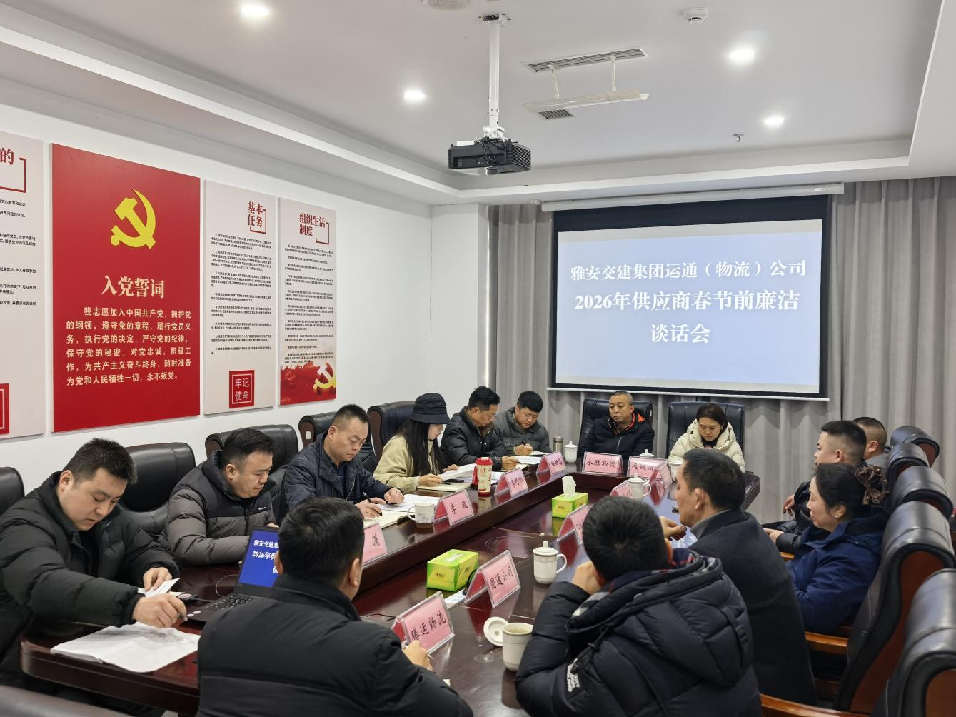 2月5日,雅安交建集團(tuán)運(yùn)通(物流)公司組織開展節(jié)前廉潔專題系列活動,公司班子成員、全體員工及合作商代表分時段參會。活動聚焦物流貿(mào)易與合作特點,通過“學(xué)部署、明制度、剖案例、促共建”相結(jié)合的方式,推動廉潔紀(jì)律內(nèi)化于心、外化于行,切實筑牢春節(jié)前廉潔防線。