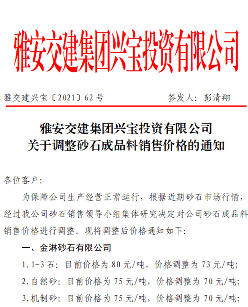 ÑŰ²½»½¨¼¯ˆF(tu¨¢n)ÅdŒš¹«Ë¾êP(gu¨¡n)ÓÚÕ{(di¨¤o)Õûɰʯ³ÉÆ·ÁÏäNÊÛƒr(ji¨¤)¸ñµÄ֪ͨ£¨2021.9.28£©