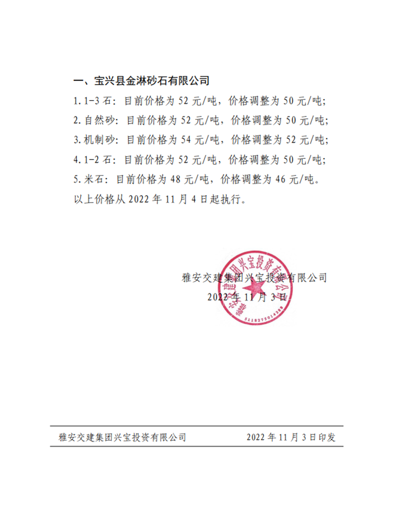 ÑŽ»½¨ÅdŒš¡²2022¡³55Ì– êP(gu¨¡n)ÓÚÕ{(di¨¤o)Õûɰʯ³ÉÆ·ÁÏäNÊÛƒr(ji¨¤)¸ñµÄ֪ͨ-11.5